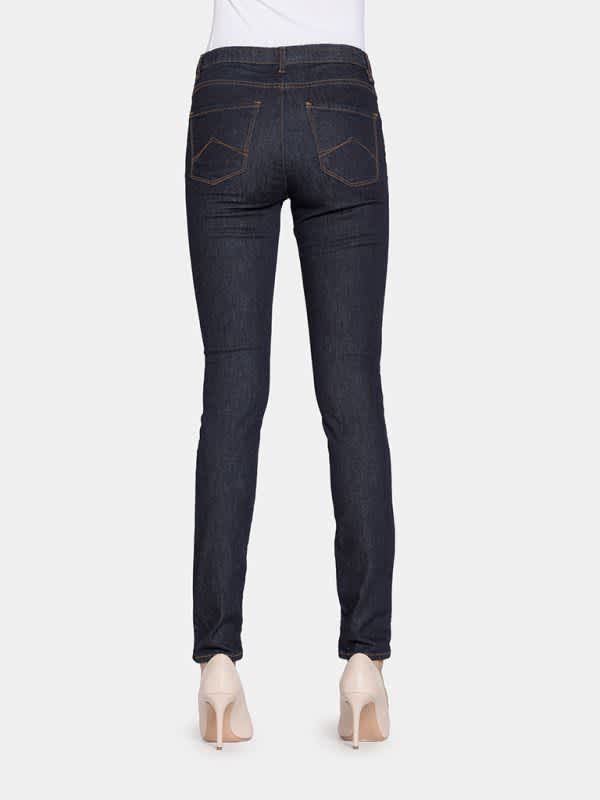 Jegging jeans color dark. Jegging has the look of jeans, but wears like leggings. The pockets and button on the front are for decoration. The jegging does have small back pockets. It is possible to wear a belt through the loops. The jeggings are very elastic and therefore very comfortable to wear and fit well with our concept.